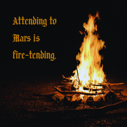One way to attend to Mars is to tend this inner fire. As the planet of passions, virility, and bodily heat, the inner fire naturally lies within his purview. By cultivating the inner flame, by stoking it with the bellows of intention, one can embody and attune to their own unique expression of Mars.